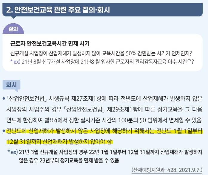 (참고) 근로자 안전보건교육시간 면제 시기